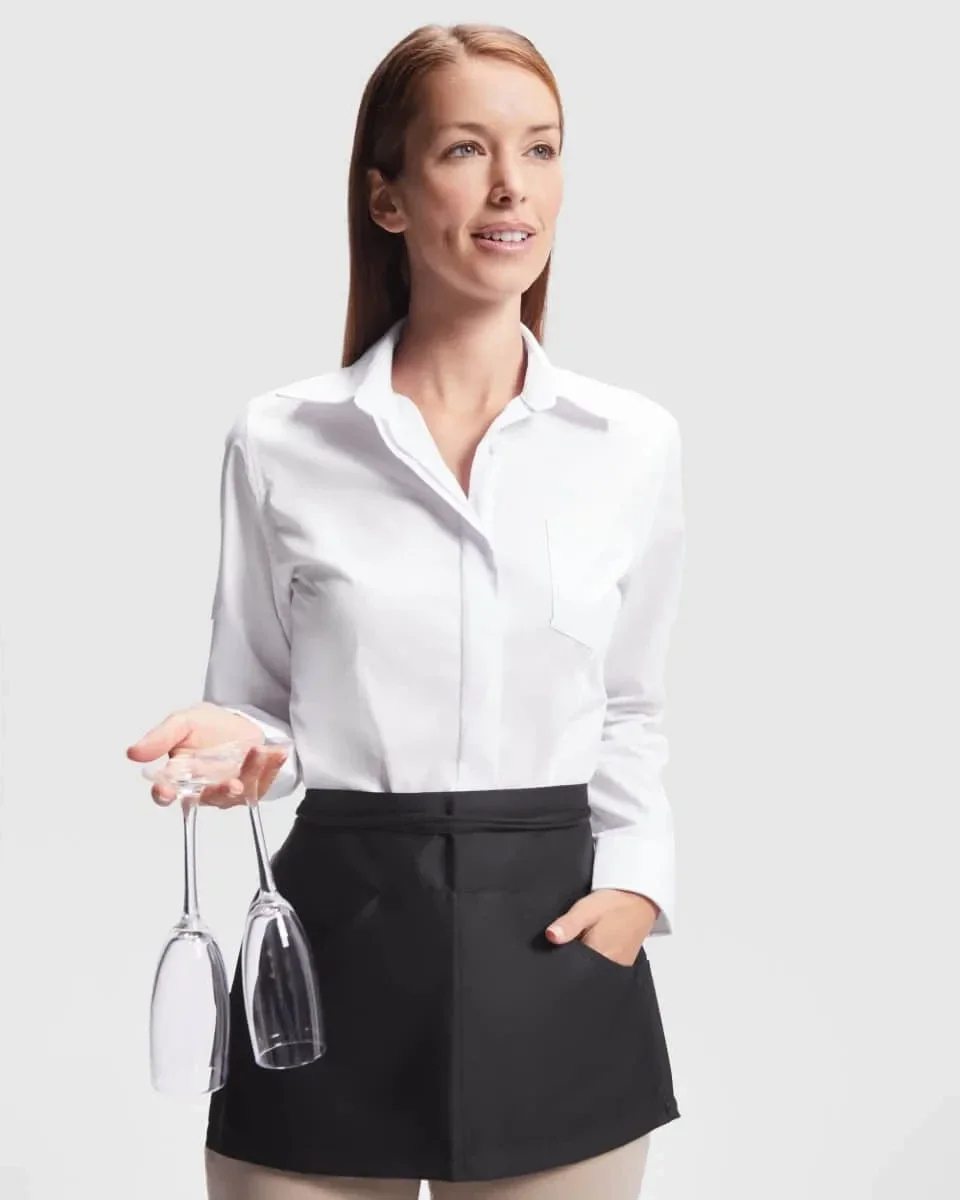 Delantal pequeño con dos bolsillos. Cinta en torno a la cintura.Medidas: 45 cm x 30 cm.